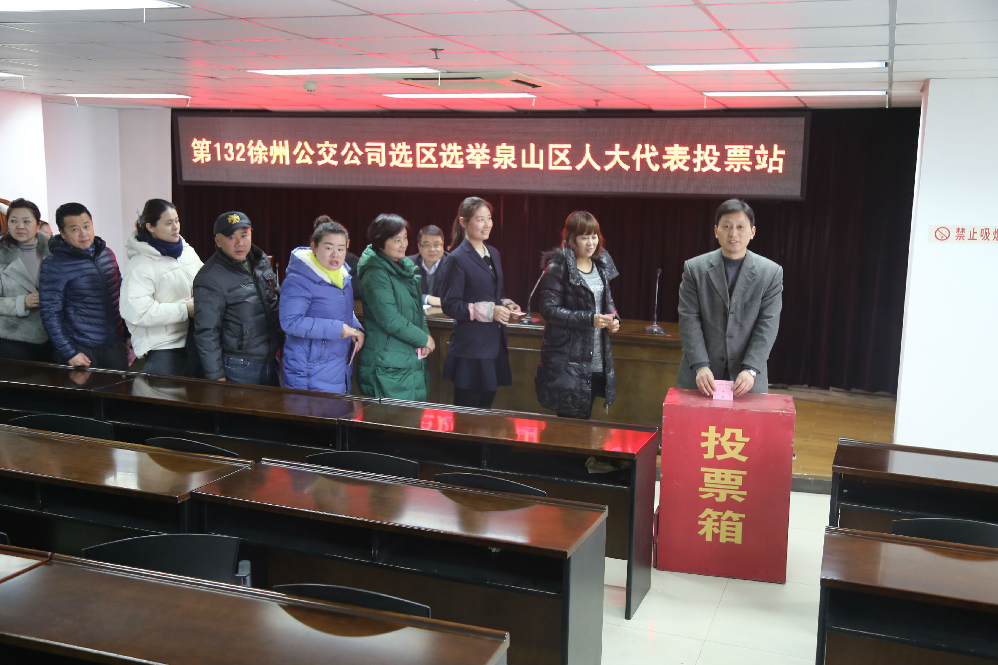 12月20日,公司作為132選區(qū),設立了11個投票站,4776位選民參與投票。公司選民多、地點分散,但在各選民小組緊張有序的組織下,當日15:00前,所有選民小組收齊了選票,封存了投票箱,按要求送至有限公司選民工作辦公室。經(jīng)過統(tǒng)計匯總,最終兆通公司杜明同志當選泉山區(qū)第九屆人大代表。