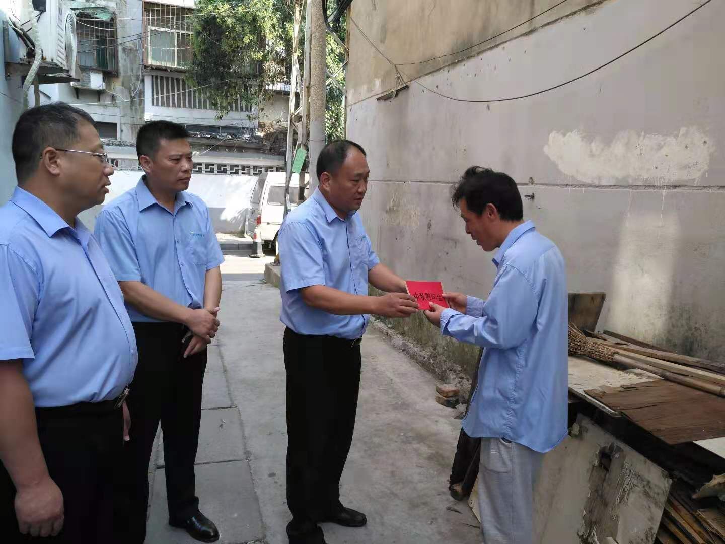 在督導(dǎo)隊(duì)員岳雷家中,馮陸陸總經(jīng)理鼓勵(lì)他保持輕松的心情,樹(shù)立克服困難和戰(zhàn)勝疾病的堅(jiān)定信心,努力走出困境。同時(shí)要求督導(dǎo)隊(duì)多給予關(guān)心,盡力幫助解決生活工作中的困難。